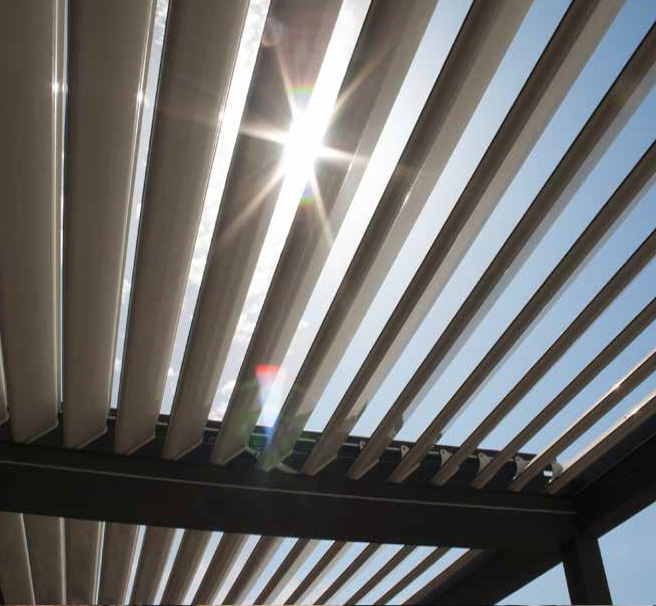 Los robustos perfiles de aluminio y el diseño de la pérgola ZEN 602 permiten alcanzar dimensiones XXL … Su exterior es como le gusta. ¿La ventaja adicional? Su doble pistón para una rápida apertura. Bajo la pérgola ZEN 602, disfrutará de momentos en compañia sin preocuparse del mal tiempo.