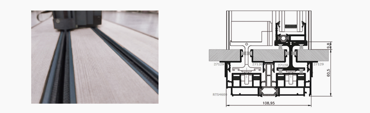 Sistema de corredera con mínima sección de aluminio y perfil interior oculto.